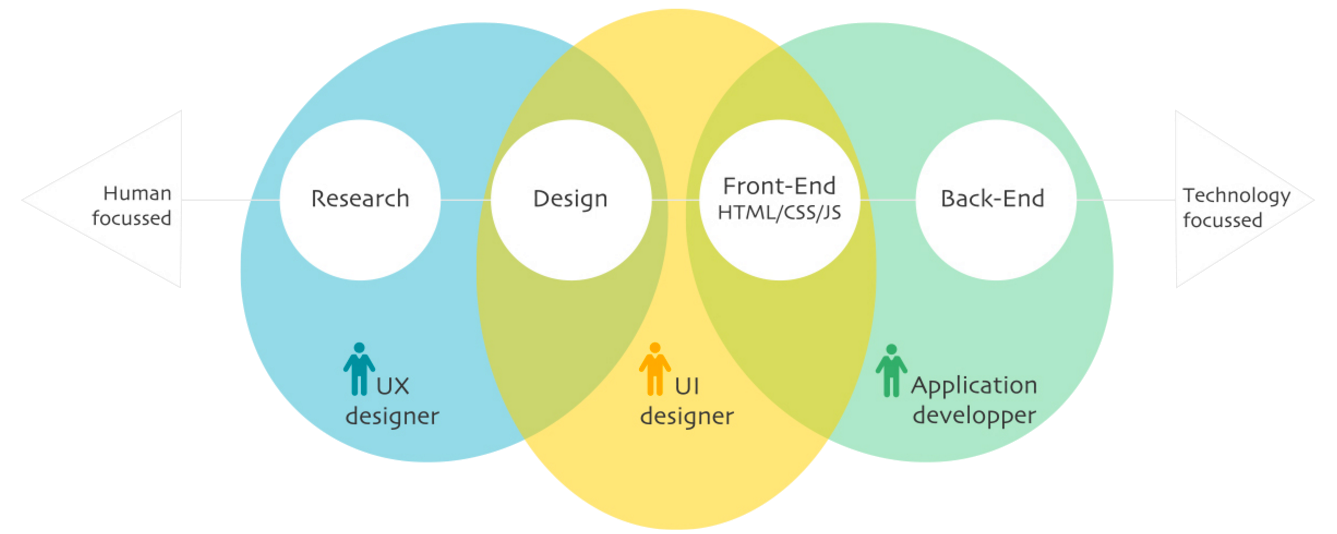 L’UI Designer intervient au milieu du process, il s’occupe de toute la partie création en collaboration avec l’UX Designer. Mais garde également un suivi de l’intégration faite par le développeur front-end, afin de s’assurer que les maquettes ont bien été respectées.