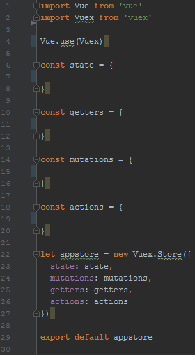 Définissons à présent le store de notre application en créant un fichier AppStore.js :