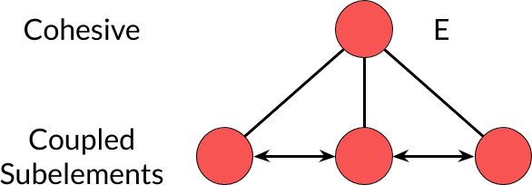 L'élément E est cohésif quand les éléments qui le composent sont couplés. Ok, donc, la cohésion (qui est une chose que l'on recherche) a besoin de couplage (qui est quelque chose que l'on veut éviter) !
