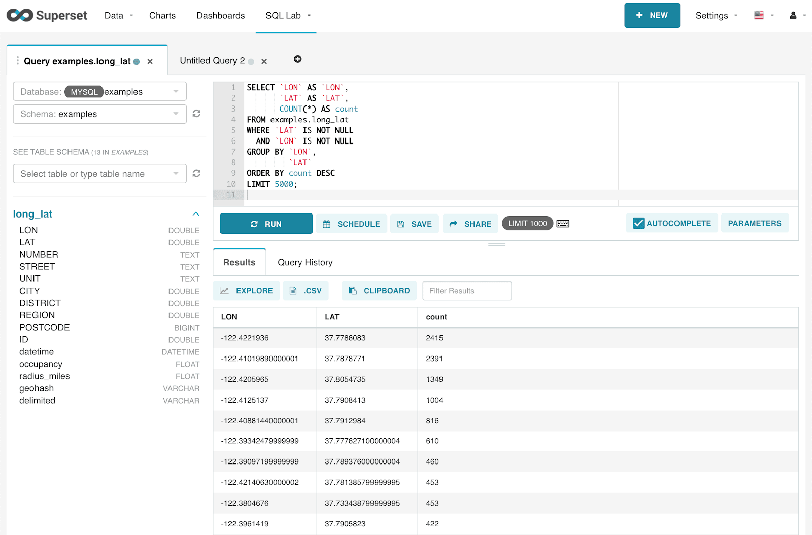 Apache Superset est aussi composé d’un éditeur SQL/IDE avec requêtage interactif, nommé SQL Lab, j’en reparle ultérieurement.