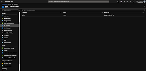 Dans le menu de gauche figurent des raccourcis utiles comme SQL databases qui permet de nouveau de retrouver le lien vers la DB ou encore Firewalls and virtual networks qui permet de gérer les adresses IP autorisées à se connecter à la DB.