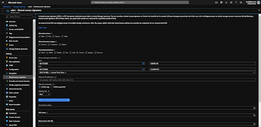 Figure 19 : la Shared access signature pour l'obtention de droits sur le storage