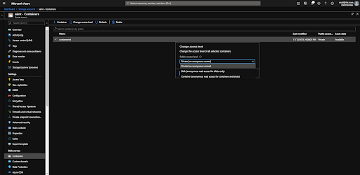 Figure 22 : édition du niveau d'accès d'un Blob container