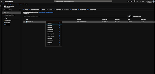 Ainsi, la vue d’un container permet de visualiser les blobs contenus par celui-ci ainsi que l’URL publique à laquelle ils sont accessibles, mais également d’en uploader de nouveaux, d’en supprimer et même de créer des tokens d’accès spécifiques à ces blobs.