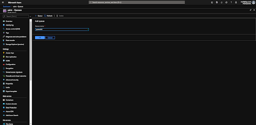 Cette vue liste l’ensemble des queues créées au sein du storage. Elle permet d’en créer de nouvelles et de les supprimer. Simulez la création d’une nouvelle queue en cliquant sur le bouton ‘+’ à côté du bouton Refresh.