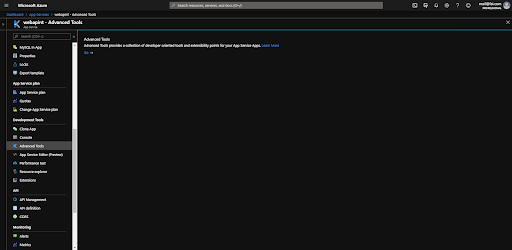 Cette vue très simple permet d’accéder à Kudu, le back-office des web apps d’Azure qui stocke les logs applicatifs de la web app.
