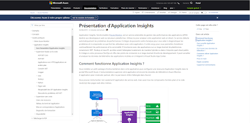Pour configurer Application Insights (fonctionnalité d’Azure Monitor) dans votre application, vous pouvez suivre cette documentation qui redirige vers la page web présentée en Figure 9.