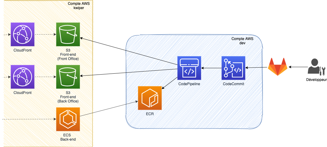 Nous avons créé un dernier compte AWS contenant tout l’outillage CI/CD des différents environnements.