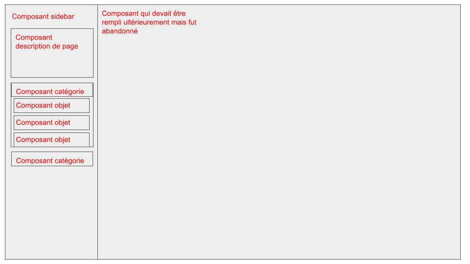 La structure est très simple, une sidebar avec une liste de catégories pouvant se déployer en une autre liste sous-jacente des objets contenus dans cette catégorie.