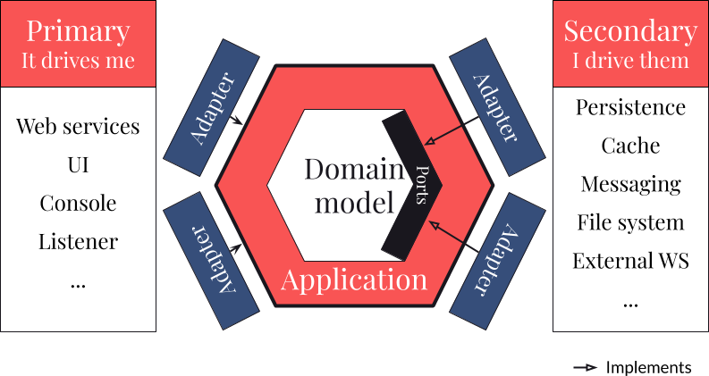 Quand on commence à travailler avec ce type d'architecture, on a tendance à commencer par les secondary adapters pour revenir en "terrain connu". Il faut vraiment prendre l'habitude de commencer par le domain model en ne pensant pas tout de suite à la manière de le persister. C'est cette approche qui remet le métier au centre des discussions et des préoccupations, les adapters ne sont qu'un détail d'implémentation !