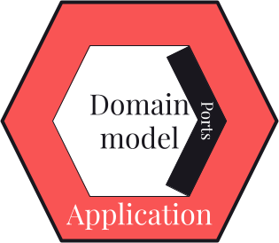 Pour faire son orchestration, le layer application doit pouvoir communiquer avec "l'extérieur", c'est pourquoi on ajoute des ports dans le domain model (nous verrons un peu plus loin comment ces ports permettent la communication) :