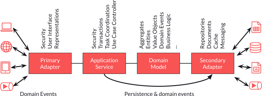 Commençons par le centre puisque cette architecture est bel et bien centrée sur le domain model :