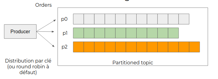 - Soit par clé si celle-ci est définie : les événements portant la même clé seront écrits dans la même partition