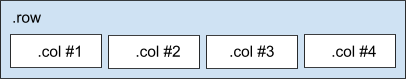 Dans l’exemple précédent, on crée une ligne avec 4 colonnes. Ici on peut noter qu'utiliser .col divise équitablement l’espace d’affichage de la ligne parmi toutes les balises adjacentes portant la classe .col.