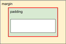 Chaque élément qui compose la page possède des propriétés qui ont toutes leur importance dans le visuel de la page, comme la marge qui se démarque des autres. Il existe deux types de marge, la marge intérieure (padding) et la marge extérieure (margin), elles sont délimitées par la bordure (représenté en rouge dans l'exemple ci-contre).