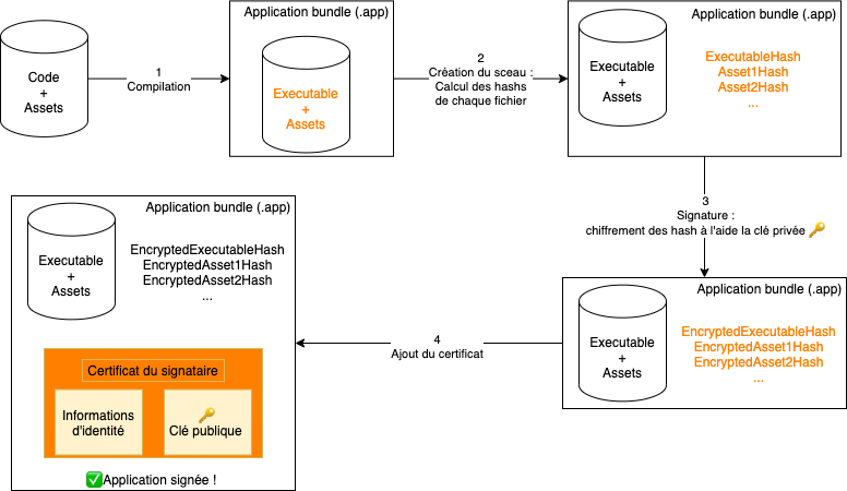 | Application signée | Certificat + signature + exécutable + ressources |