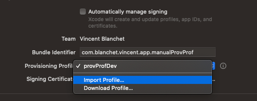 En effet XCode va faire la demande de certificat et générer les provisioning profiles lui-même, il peut également décider de les modifier. Ce qui a comme conséquence de casser le système de build chez les autres développeurs car leur certificat n’est alors plus valide.