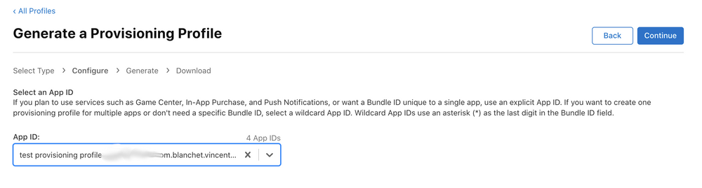 Génération du provisioning profile