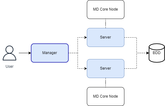 MD Core Manager : Si l’on possède plusieurs MD Core Server avec ou sans ses MD Core Node et qu’on veut manager plusieurs MD Core Server d’un seul endroit alors on peut utiliser un MD Core Manager qui peut gérer l’ensemble d’un parc Metadefender (Le Manager ne gère pas le fonctionnement de base de données partagées).