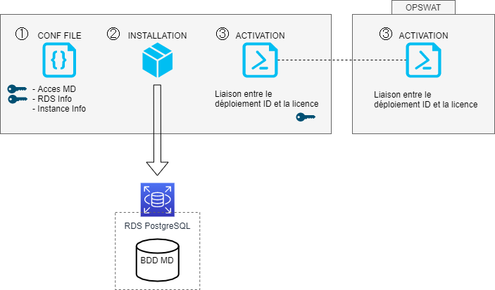 - L’activation signifie lier le déploiement ID et la licence, ces informations sont aussi stockées chez l’éditeur OPSWAT. Cela peut être utile lorsque l’instance est perdue, dès lors il faudra désactiver la licence pour pouvoir l’utiliser sur une autre machine. Il faut détenir le déploiement ID pour cela, et si celui-ci n’a pas été stocké, il est possible de le demander au support d’OPSWAT.
