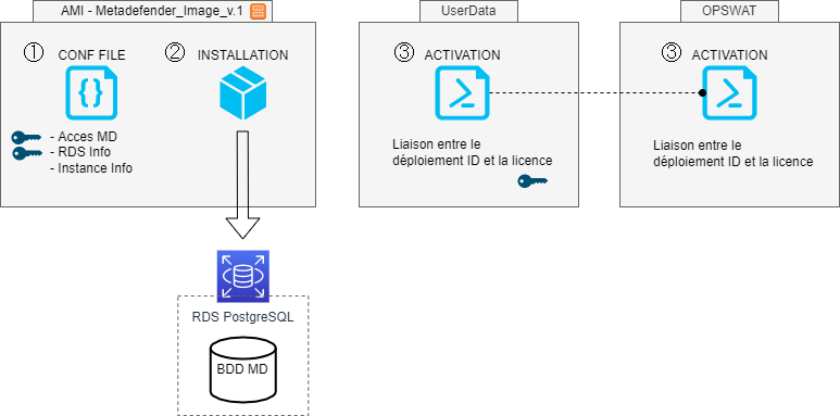 Instance_Name : Il faut remplir un fichier de configuration au préalable de l’installation. Dans celui-ci, on peut y renseigner un nom d’instance (pas l’instance name d’AWS), s’il n’est pas défini, par défaut il sera composé des 6 premiers caractères du deploymentID. Cet instance name sert d’identification à la base de données. Si deux instances ont le même instance name, la base de données (si partagée) va considérer que c’est la même machine, ce qui provoque des problèmes à l'activation de la licence, certes elle sera activée sur les deux instances, mais une seule machine aura ses moteurs antivirus activés, car la base de données ne stockera les moteurs et les informations de mise à jour que d’une seule des deux. L’instance name peut être redéfini après l’installation, dans un fichier de configuration.