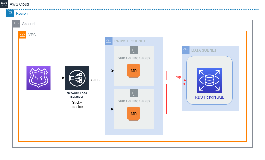 - Dans le fichier de configuration sont renseignés les différents accès de la solution, les accès actuels de la base de données distante et enfin le nom de l’instance metadefender (au sens Metadefender et non pas celui d’AWS) reconnu par la base de données.