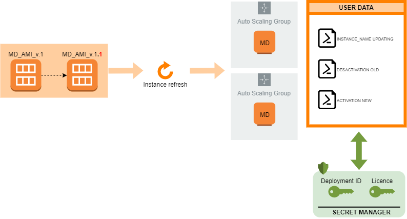 Les déploiements IDs sont stockés dans une secret et la seule façon de différencier les deux machines et leur déploiement ID est d’utiliser les tags, et 1 ASG permet d’avoir un tag particulier pour l’instance.