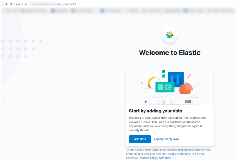 Nous pouvons maintenant accéder à l’interface de Kibana en récupérant l’adresse IP externe “34.138.233.106” du service :