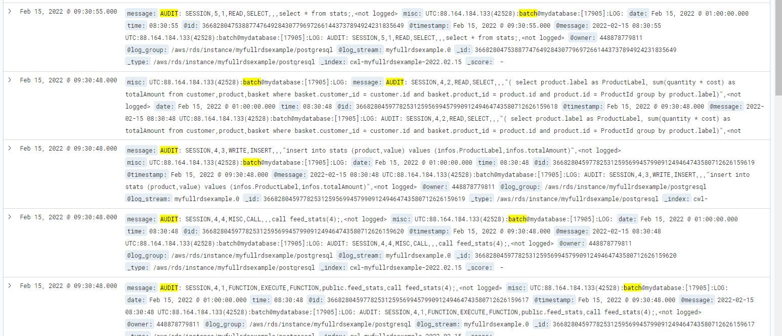 Se référer à https://github.com/pgaudit/pgaudit#settings pour le détail de la configuration. Le détail de la procédure est disponible dans la documentation officielle AWS ici :