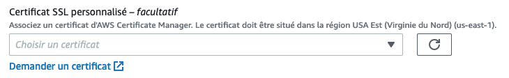 Si vous vous êtes trompé de région dans la création de votre certificat, ce n’est pas grave, vous pouvez le créer à nouveau dans la bonne région et finaliser la création de votre distribution.