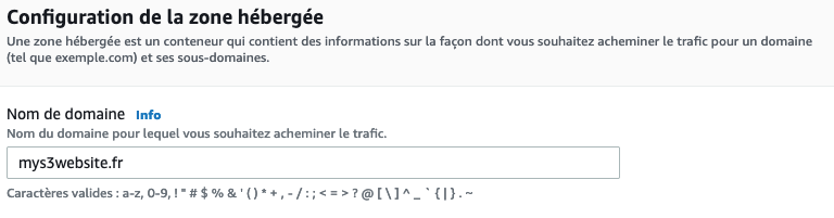 Si vous ne le faites pas, vous ne pourrez pas créer un enregistrement (record) sur Route 53 pour y associer votre site S3 à votre nom de domaine.