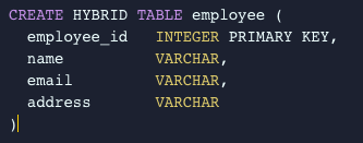 Ci-dessous un code qui illustre la façon dont une table hybride est créée :