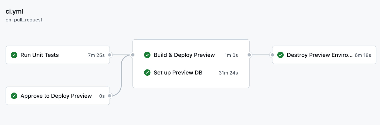 Qui dit déploiement, dit CD (Continuous Deployment), et qui dit CD dit… CI (Continuous Integration). C’est ainsi que nous avons écrit un fichier .yaml pour la CI et un pour la CD. Comme décrit précédemment, le fichier de CI permet de packager le code Python en wheel, de lancer les tests unitaires et déployer un environnement de preview (pas de panique on revient la-dessus juste après).