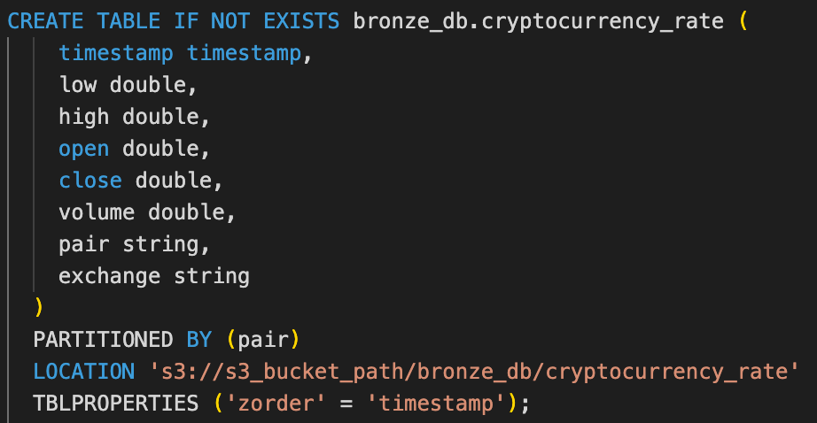 Nous avons commencé par l’ingestion du bronze, et pour ce faire nous avions besoin de mettre en place une mécanique de streaming pour ingérer la donnée brute dans une Delta Table. Pour rappel, les données extraites de la blockchain Ethereum sont déposées toutes les 15 secondes dans 3 buckets S3 sous forme de fichiers Parquet. Nous avions 3 types de fichier à traiter : des fichiers de logs, de transactions et de traces. Inutile de rentrer dans les détails du contenu de ces fichiers mais l’important est de comprendre que chaque table bronze devait être branchée en streaming sur le bucket correspondant.