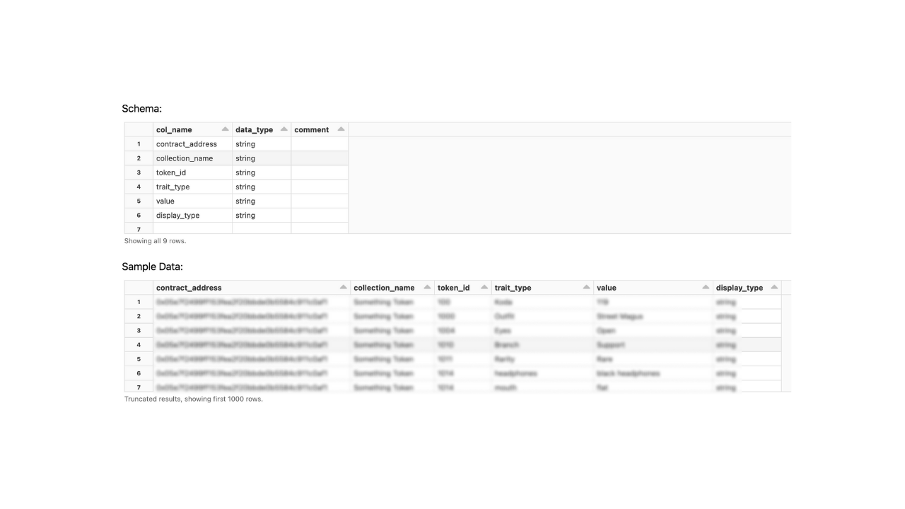 Tout d’abord, nous avons intégré des sources provenant de streams Kinesis contenant des données off-chain issues d’API externes. Elles ont pour but d’enrichir les données on-chain afin de répondre aux KPIs attendus par le client. Ayant besoin d’informations relatives aux transactions, collections et aux autres plateformes qui n’étaient pas directement accessibles sur la blockchain, nous étions contraints d’utiliser des sources externes. Par exemple, les métadonnées de certains NFT ou collections ne sont pas stockées on-chain, nous obligeant à utiliser une API pour les obtenir.