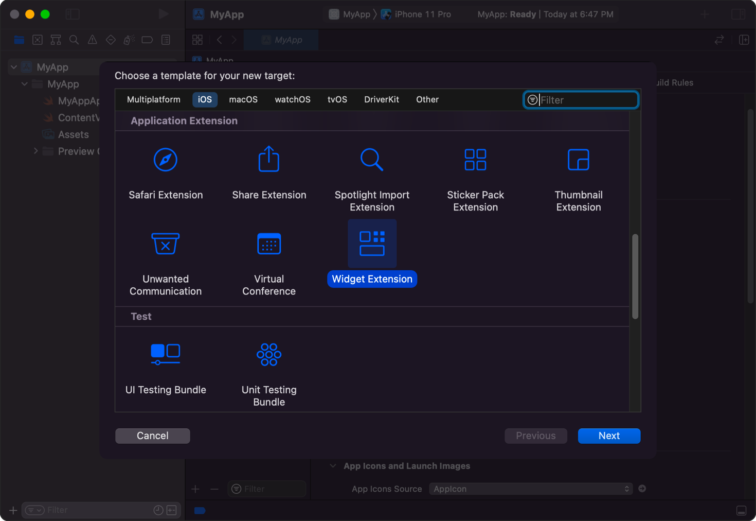 Pour créer un nouveau Widget, il faut créer un nouveau projet sur XCode et choisir l’option WidgetKit Extension.