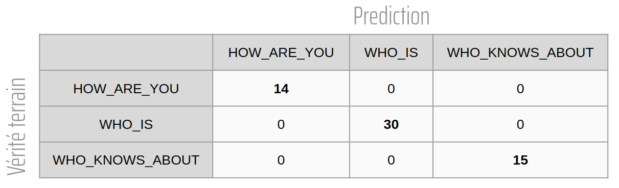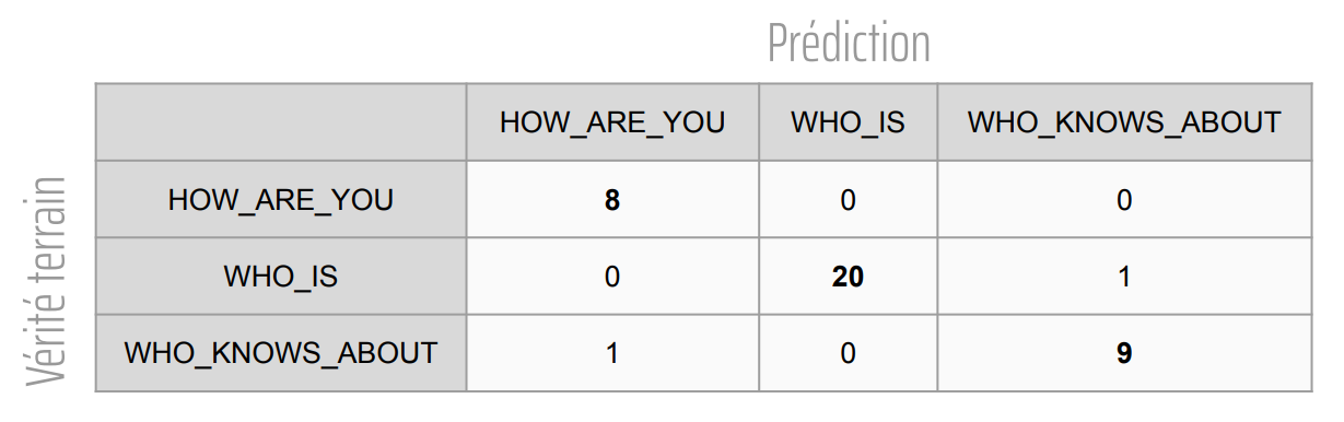- “Comment ça va ?” ⇒ classe HOW_ARE_YOU