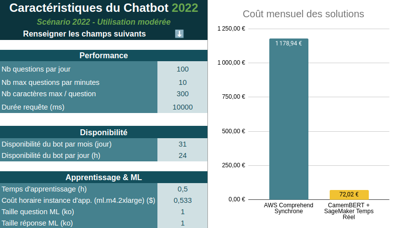 Figure 8 : Caractéristiques du chatbot et coûts mensuels associés pour les 2 solutions
