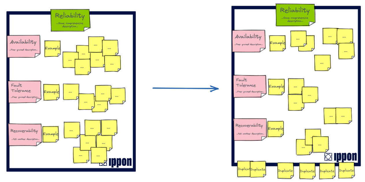 S’ensuivra alors le travail de l’architecte (et/ou du facilitateur) pour consolider cette matière produite et la formaliser plus proprement dans les documents d’architectures adaptés : en prolongeant l’arbre du modèle de qualité, en l’intégrant dans un document d’architecture et/ou en rédigeant des scénarios de qualités (en suivant le standard arc42 par exemple).