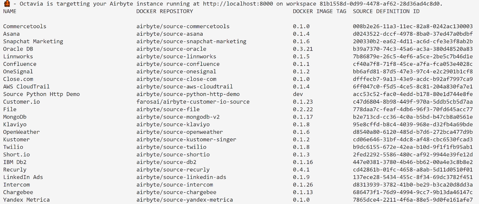Cette commande aura pour effet de décrire d’un seul coup toutes vos ressources Airbyte.