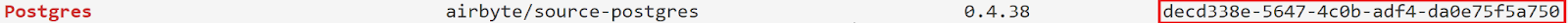 Pour rappel, nous voulons créer la connexion Postgres → Snowflake. Nous aurons besoin pour cela de l’identifiant du connecteur source Postgres ainsi que l’identifiant du connecteur de destination Snowflake.