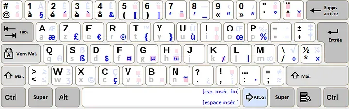 Je me baserai la plupart du temps sur le Qwerty dans ce billet car c’est la disposition de clavier la plus utilisée dans le monde. Malgré tout, mon propos reste applicable à l’Azerty, étant un variant du Qwerty où seules 3 lettres changent d’emplacement.