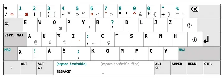À la différence des dispositions précédentes, le Bépo a été créé pour être la meilleure disposition pour les utilisateurs·trices francophones :