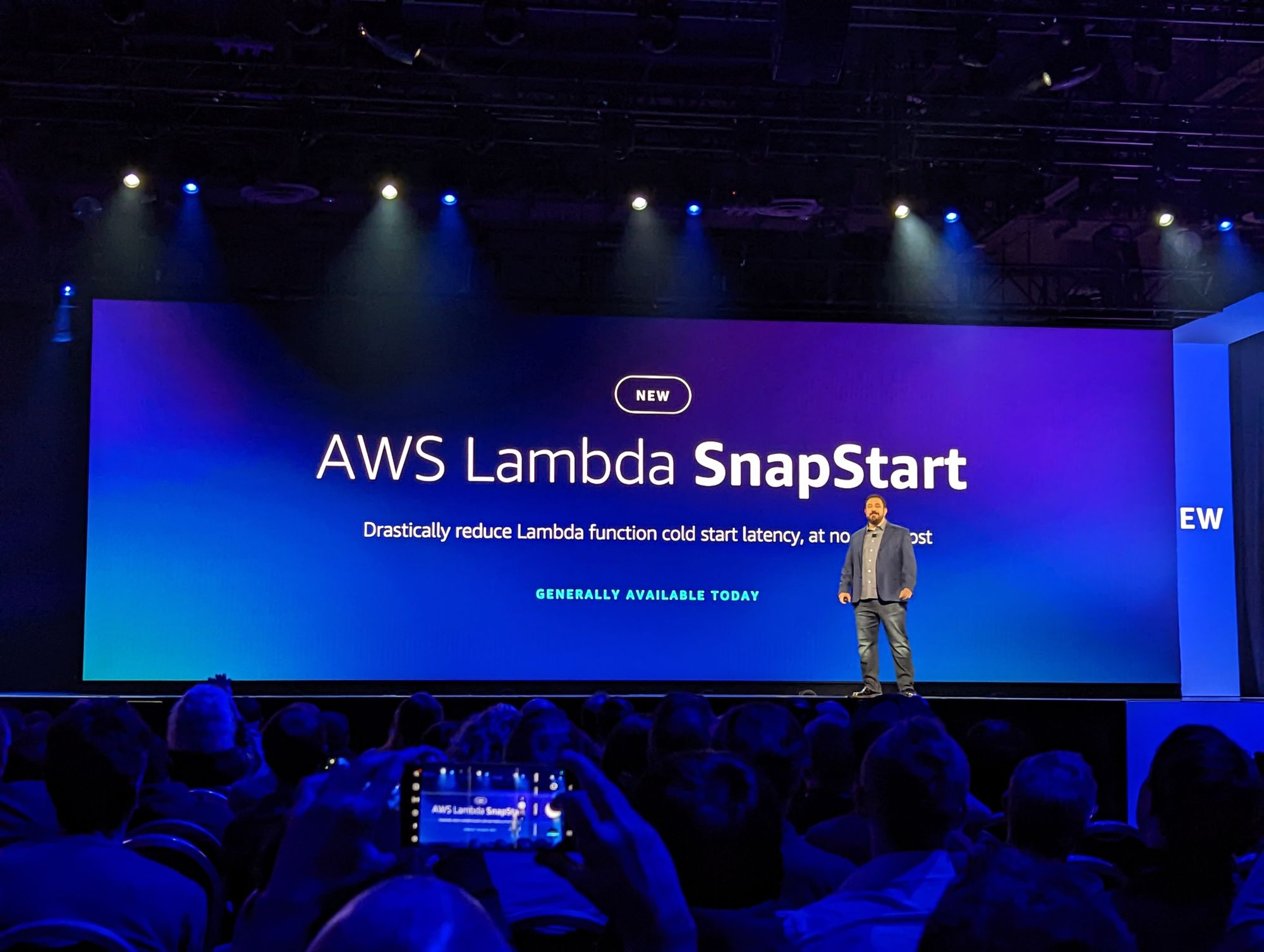 SnapStart active la mise en cache d’un snapshot immuable et chiffré de la mémoire et du disque lors de la publication d’une Lambda. Ce cache contient ainsi toute la phase d'initialisation. Il permet ensuite une exécution plus rapide et plus prédictible (quasi suppression du cold start). Il n’y a pas de surcoût.