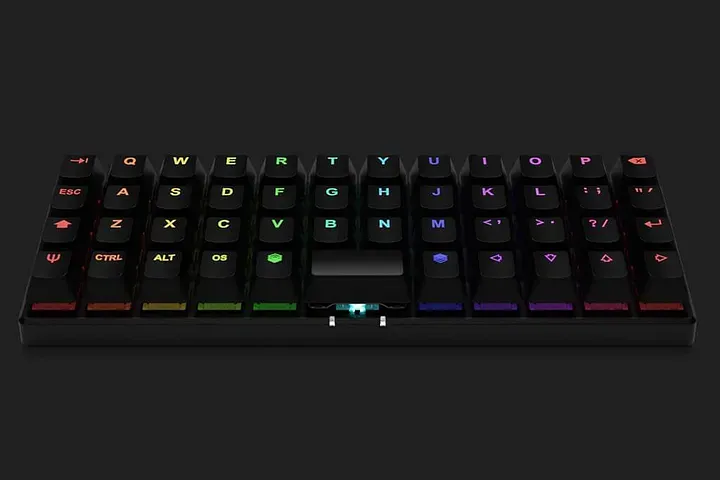 Voici un clavier 40%. Ici, les chiffres ont disparu au profit d’une touche modificateur supplémentaire.