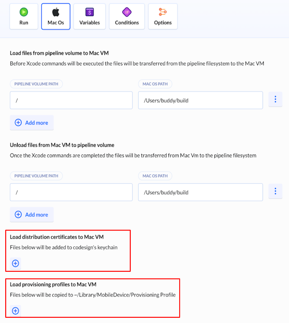 Dans le cadre d’une CI/CD pour iOS, il sera peut-être nécessaire d’ajouter les certificats de distribution ainsi que les provisioning profiles de notre application dans le trousseaux d’accès de la VM MacOS. Ceux-ci peuvent être ajoutés dans la VM dans l’interface de configuration. On peut ainsi importer les certificats au format .p12 ainsi que les provisioning profiles au format .mobileprovision pour signer notre application.