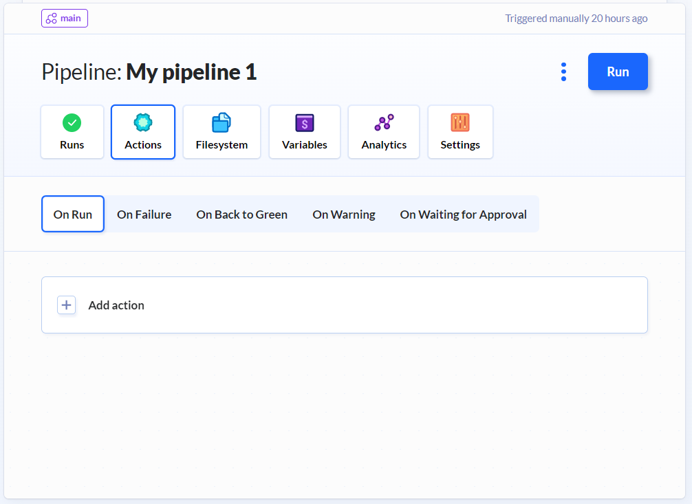 Une pipeline est définie par une suite d’actions exécutées les unes à la suite des autres. On peut définir des actions selon l’état de la branche (lors de l’exécution, lors de l’échec, etc.).
