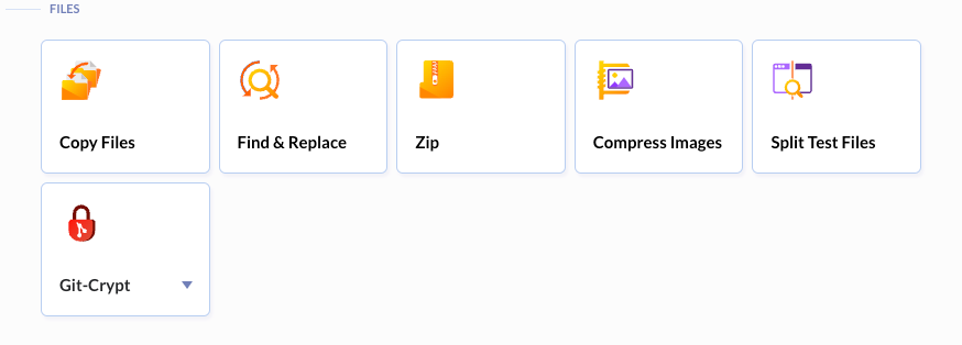 Il existe des actions plus haut niveau qui permettent de manipuler les fichiers de notre Git. La configuration de ces actions est assez simple (par exemple, pour la copie d’un fichier, il faut indiquer le chemin du fichier à copier et la destination du fichier) et Buddy se chargera de créer et configurer la VM associée.