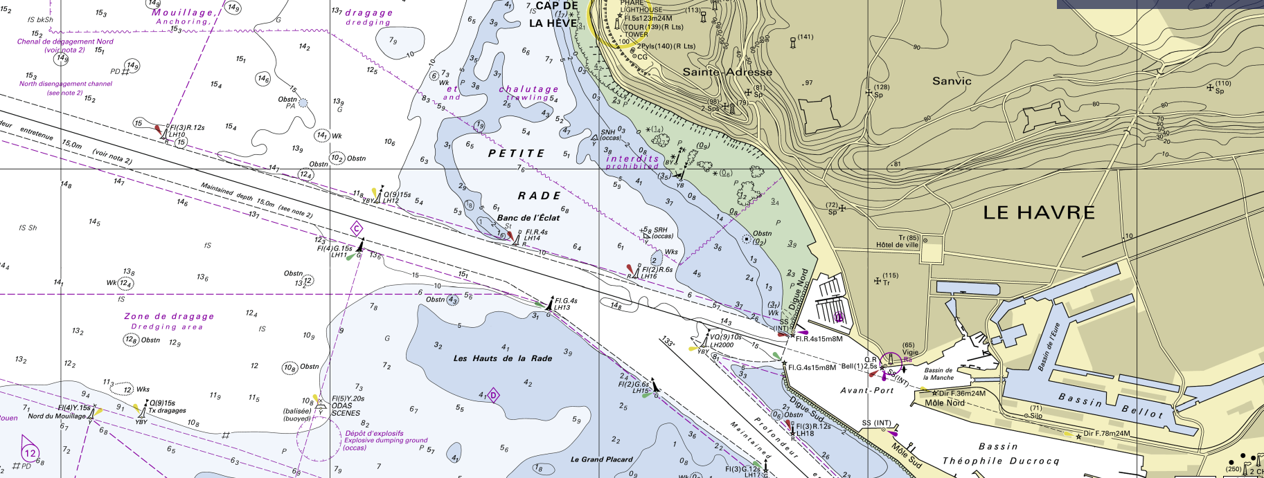 Les deux cartes du havre, l'une maritime et l'autre routière, représentent le même endroit mais pour des usages différents, elles n’ont donc pas les mêmes points d’intérêts et sont même complémentaires.
