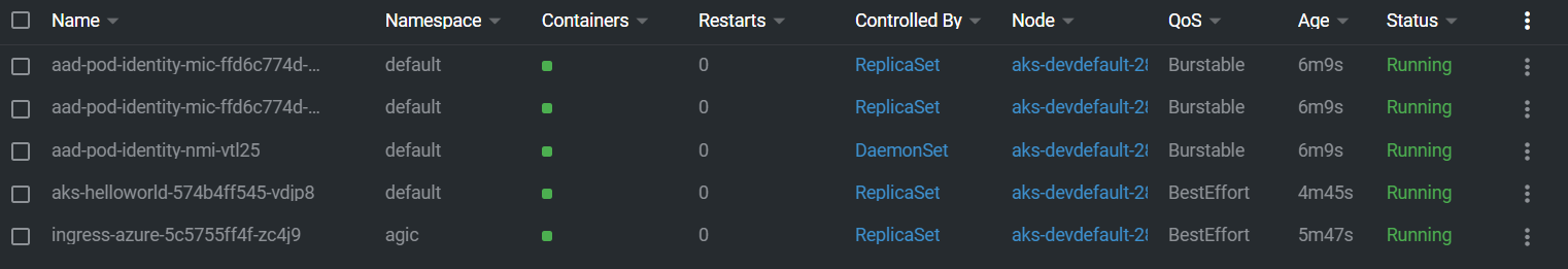 En plus de ces pods il faut bien entendu le site web (aks-helloworld). On peut voir l’ensemble des pods de l’exemple ci-dessous: